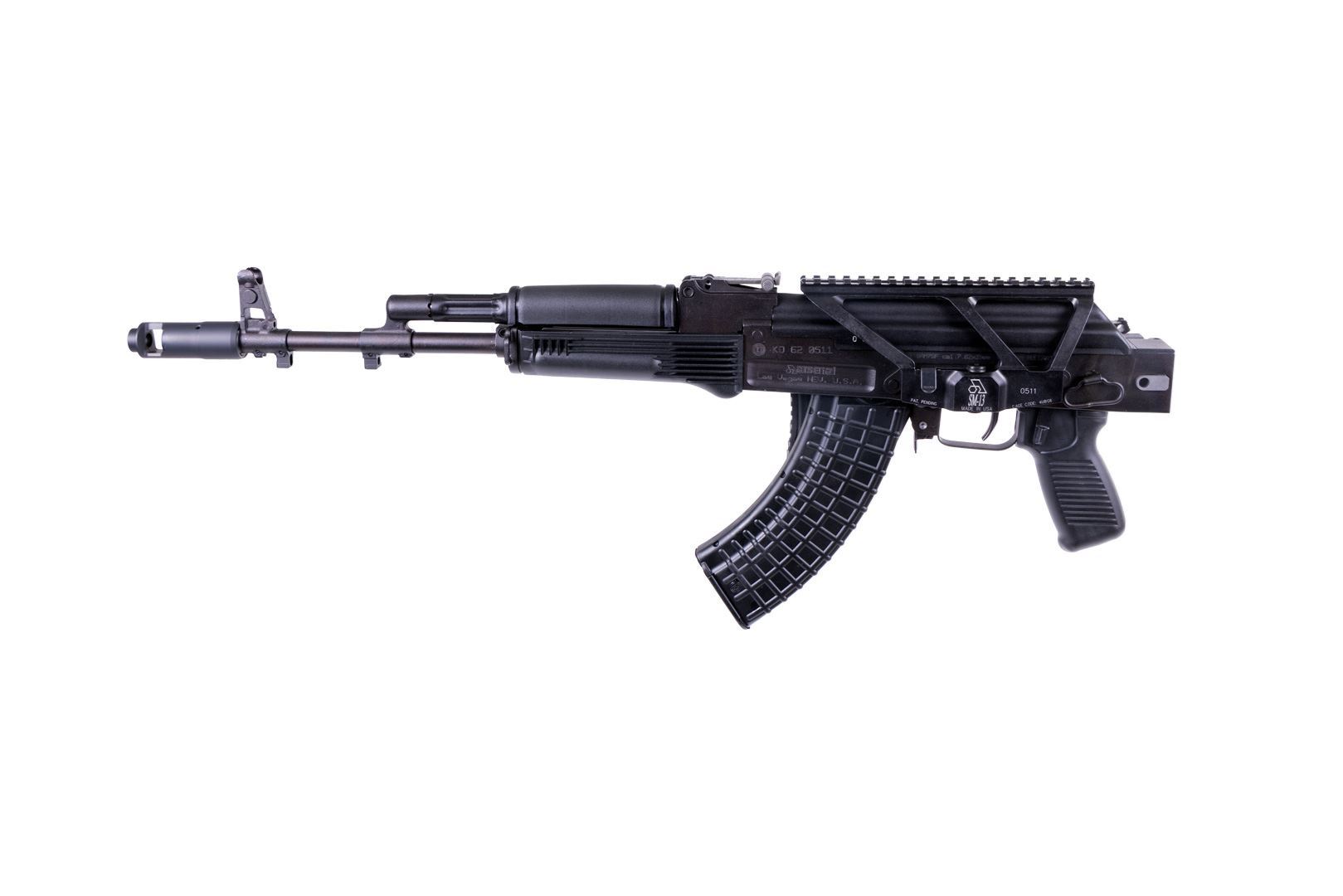 SAM7SF-86 | SAM7SF model 7.62x39mm caliber rifle milled and forged receiver enhanced FCG chrome lined hammer forged barrel 24×1.5mm muzzle right hand threads muzzle brake bayonet and accessory lugs right-side folding tubular buttstock black polymer pistol grip and handguards stainless steel heat shield ambidextrous safety lever scope rail sectional cleaning rod black 10-round magazine black 30rd magazine SM-13 Scope Mount sling oil bottle cleaning kit and Arsenal Hard Case.